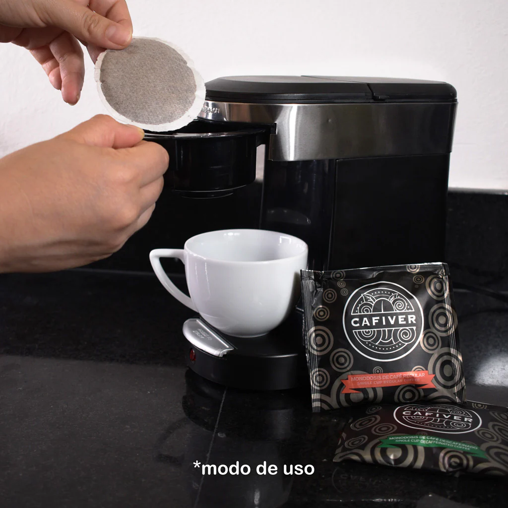 Preparar café ya no tiene que ser tan complicado. Con nuestros pods de café Cafiver solo tienes que ponerlo en la cafetera, agregar agua, encenderlo y en automático tienes una deliciosa taza de café.
